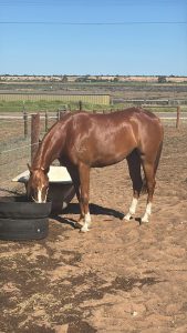 Mia is a Chestnut filly, rising 2 year old, mature approximately 14hh.