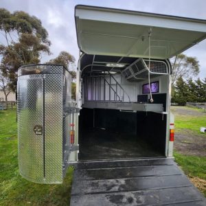Living area, including shower and toilet. Cupboards. Swing out tack box and all of the usual features in these stunning floats.