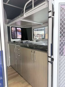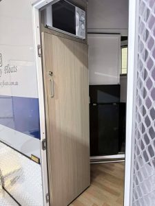 Front kitchenette with 240v Fridge/Freezer and Microwave