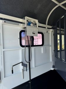 Rug rack and swing out tack box